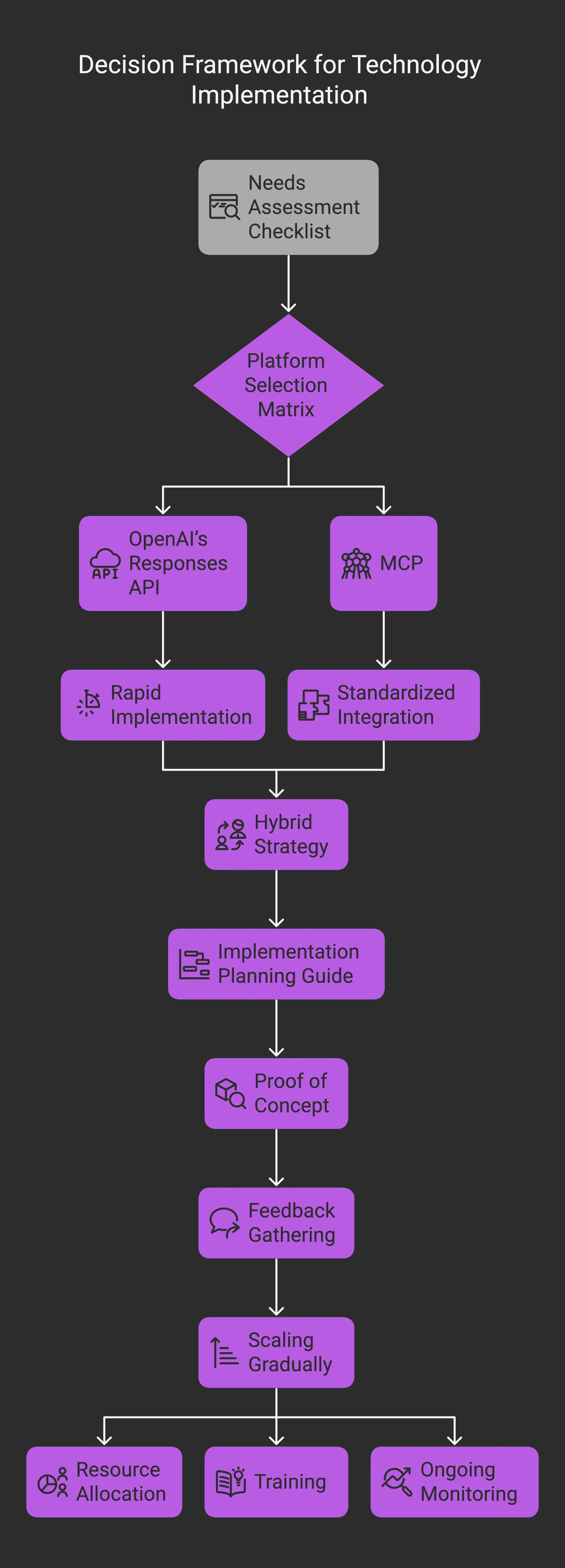 Platform Selection MatrixChoose OpenAI’s Responses API if you want rapid implementation, strong documentation, and built-in tools. Consider MCP if you require standardized integration for complex or high-volume environments and value flexibility in connecting multiple AI systems.