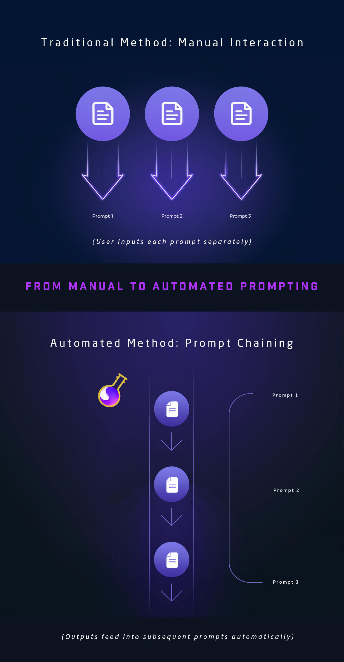 Prompt Chaining: A New Era in AIWhat is Prompt Chaining?Forget what you thought you knew about AI interaction. Prompt chaining is more than just another method—it’s a shift that differentiates basic users from advanced practitioners. At its heart, prompt chaining breaks down complex tasks into a series of linked prompts, where each output serves as the input for the next step.